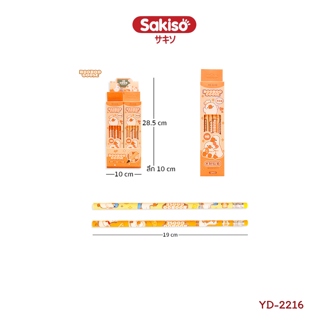 ดินสอไม้ HB แพ็ก 12 แท่ง ลาย BooBooGoose รุ่น YD-2216 – ดินสอไม้คุณภาพดี เขียนลื่น เหลาง่าย พร้อมยางลบในตัว