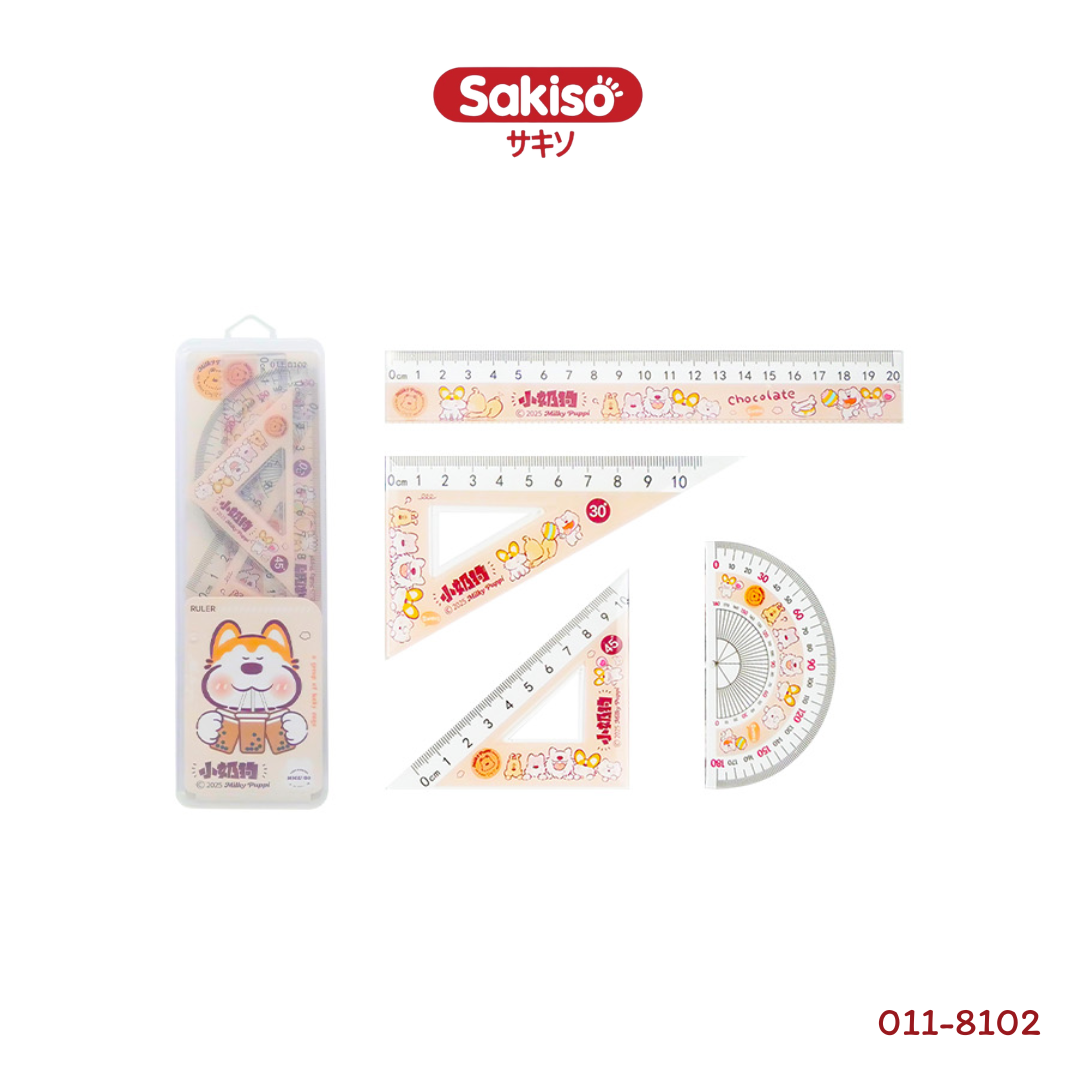 ชุดเครื่องมือวัดทางเรขาคณิตขนาดมาตรฐานจากคอลเลกชัน Milky Puppi มาพร้อมดีไซน์หน้าปกการ์ตูนน้องหมาสุดน่ารัก 3 สไตล์ ตัวอุปกรณ์ผลิตจากพลาสติกคุณภาพสูงที่มีความใสเป็นพิเศษ (High Transparency) ช่วยให้การวัดและสร้างรูปทรงแม่นยำและมองเห็นพื้นผิวการทำงานได้ชัดเจน