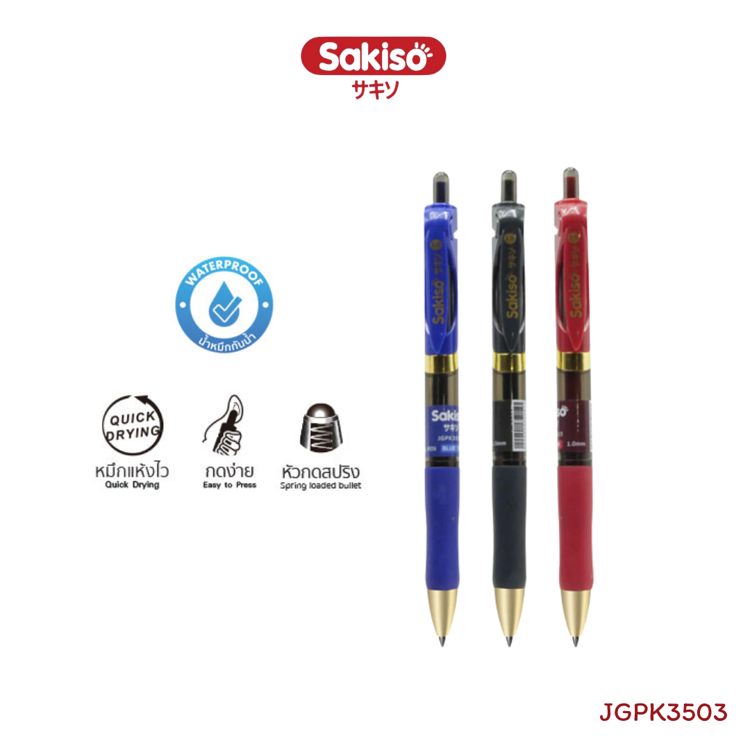ปากกาเจลกด หมึกสีน้ำเงิน ดำ แดง 1.0 mm. รุ่น JGPK3503 (ใช้กับไส้ปากกา Sakiso รุ่น JGR06)
